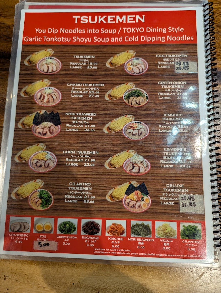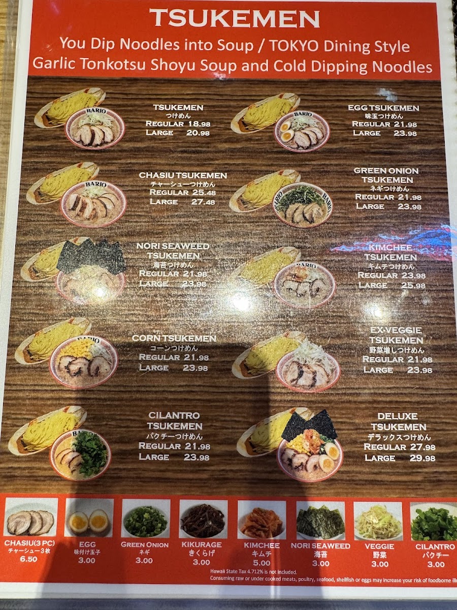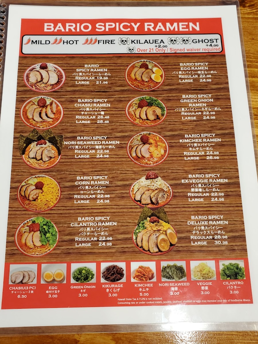 - Bario Spicy Egg Ramen: A customer favorite, known for its tender charsiu and rich flavors.